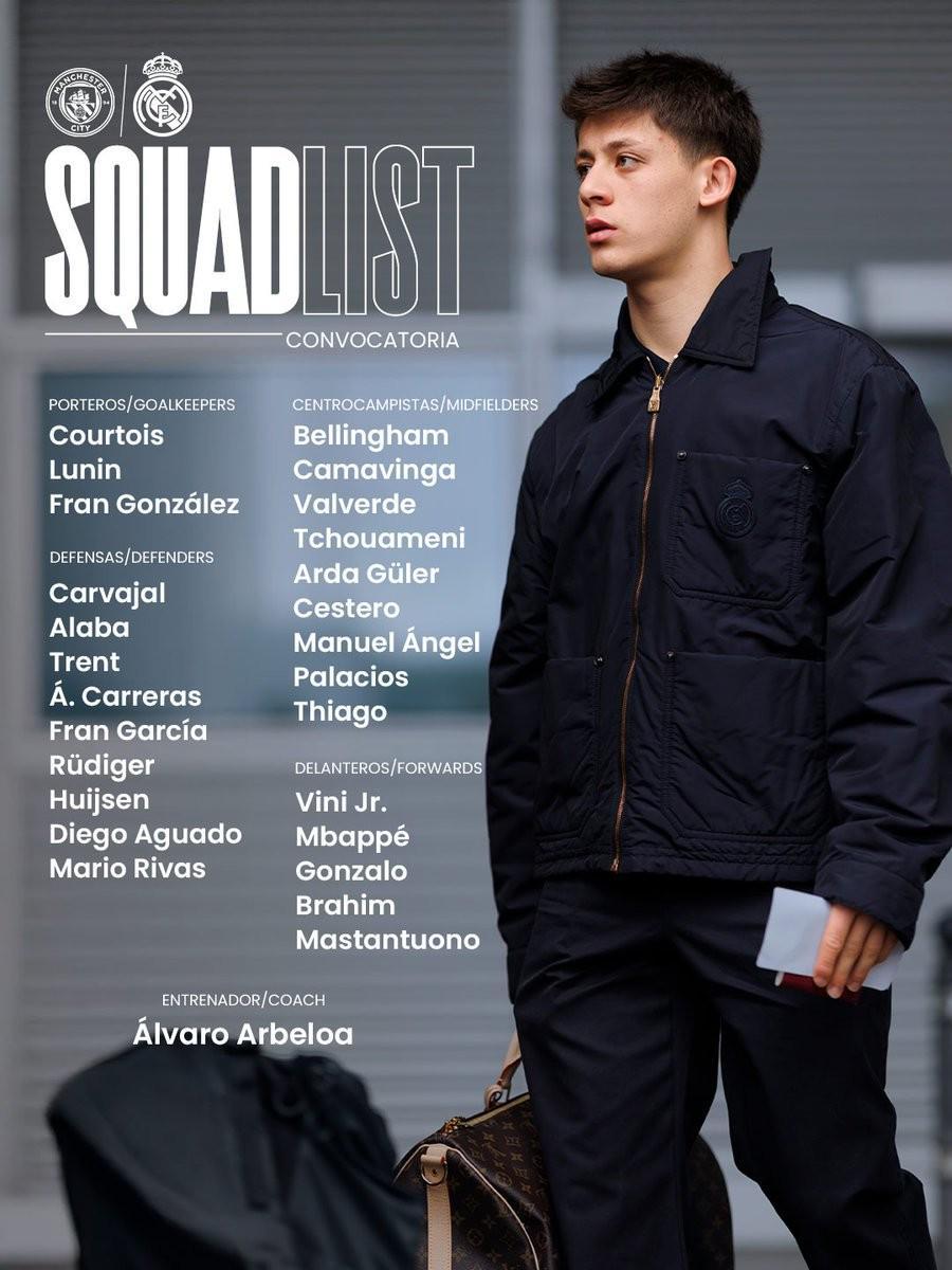 皇家马德里官方公布了欧冠1/8决赛次回合客场对阵曼城的比赛大名单,姆巴佩、卡雷拉斯回归。